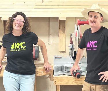 Alison and Shane Heinemeier moved to Kingsbury Texas in 2012 from New York City, where they both worked as visual artists and art handlers. They came to Texas to return to the land and start an arts non-profit and sustainable goat farm. As they were busy building their arts organization, they were called back into the art handling field by friends in the South Central Texas area who needed their particular skill set. They have over 40 years of combined experience in the field, and have built and packed crates in New York City, and at museums around the country and in Puerto Rico, Mexico and Spain. Alison specializes in crate interiors, creating structures that can safely protect from vibration and movement as the crate travels to its destination. Shane and our nephew Alex build beautiful and strong boxes in our crate shop to protect the precious items within. After several years of commuting to Austin and San Antonio for work, they decided to build their own crate shop on the farm in Kingsbury. Now they can milk goats in the morning, and make crates in the middle of the day!