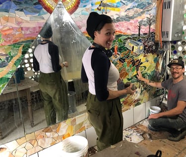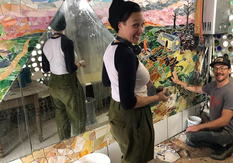 Pictured: Ken Madore and Cat Glennon working on a glass mural at Habitable Spaces.