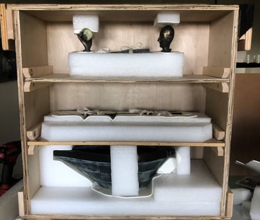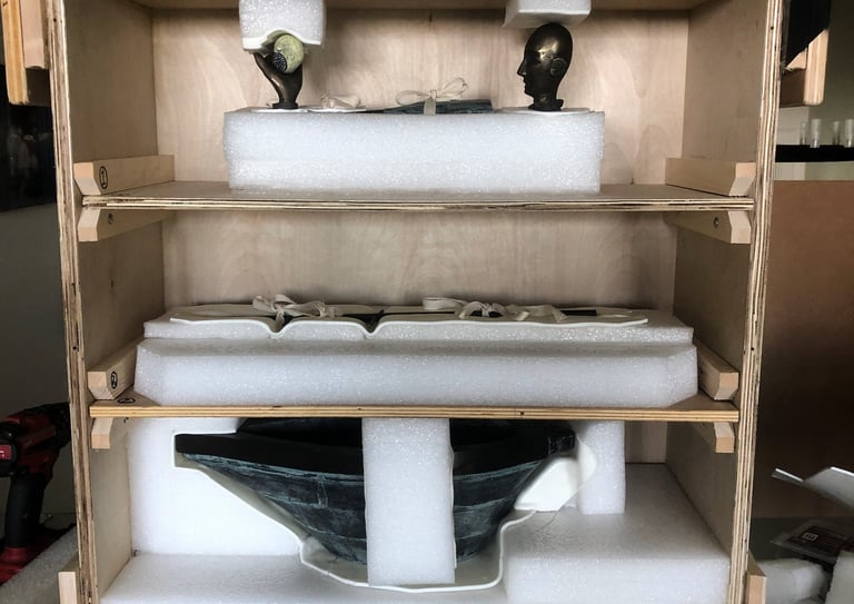 At Kingsbury Museum Crating, we are dedicated to providing our clients with top-notch fine art crating services. We understand the importance of safe transportation for fine art, and we take every precaution to ensure that your artwork arrives at its destination in the same condition it left. Our team of experienced professionals use the latest technology and highest quality materials to create custom crates that meet the needs of each individual piece of art. We fabricate three levels of crates that range from one time use to multi-venue travel, and a variety of specialty crates including monumental crates, travel frames, slat crates, acid free boxes for textiles.